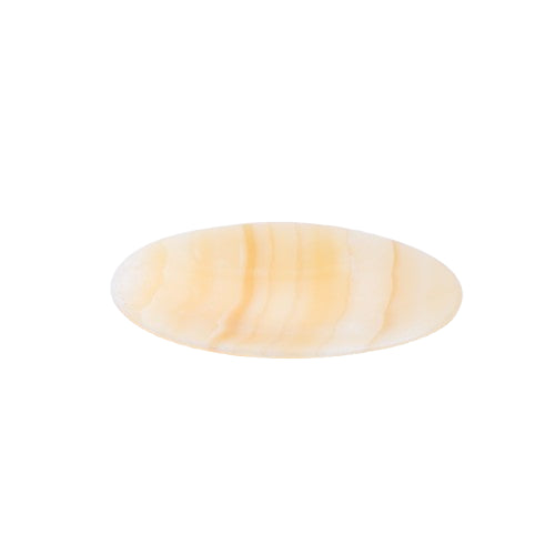 A pair of elegant oval trays, handcrafted from luxurious natural alabaster stone. These pieces feature warm color gradients ranging from light yellow to honey, with unique natural white or creamy veins that give them a distinctive artistic character. Alabaster is renowned for its translucent beauty and natural luster, making these items perfect for adding a touch of sophistication and luxury to any decor. They can be used as standalone decorative pieces, small trays for holding jewelry or small items, or as artistic bases for other elements. Their simple and elegant design makes them suitable for various decorative styles, from classic to contemporary.